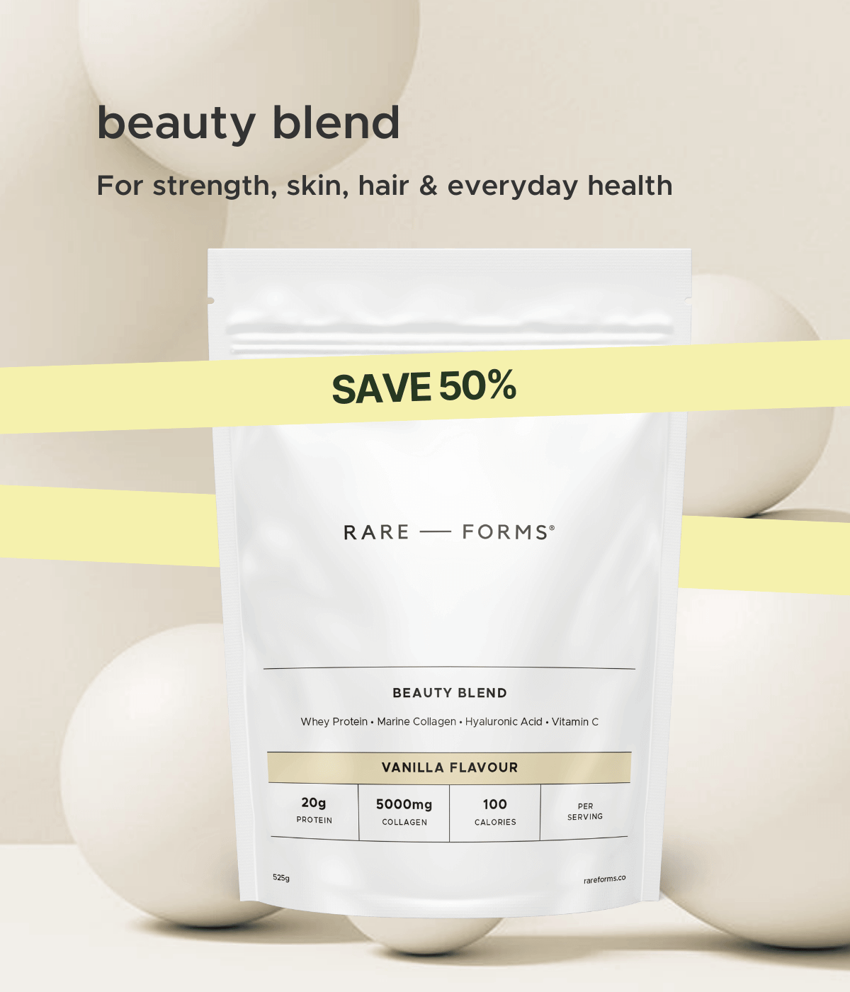 Consistency is the most critical element of establishing any healthy habit. To get the most out of your Rare Forms Beauty Blend, we recommend one serving daily.